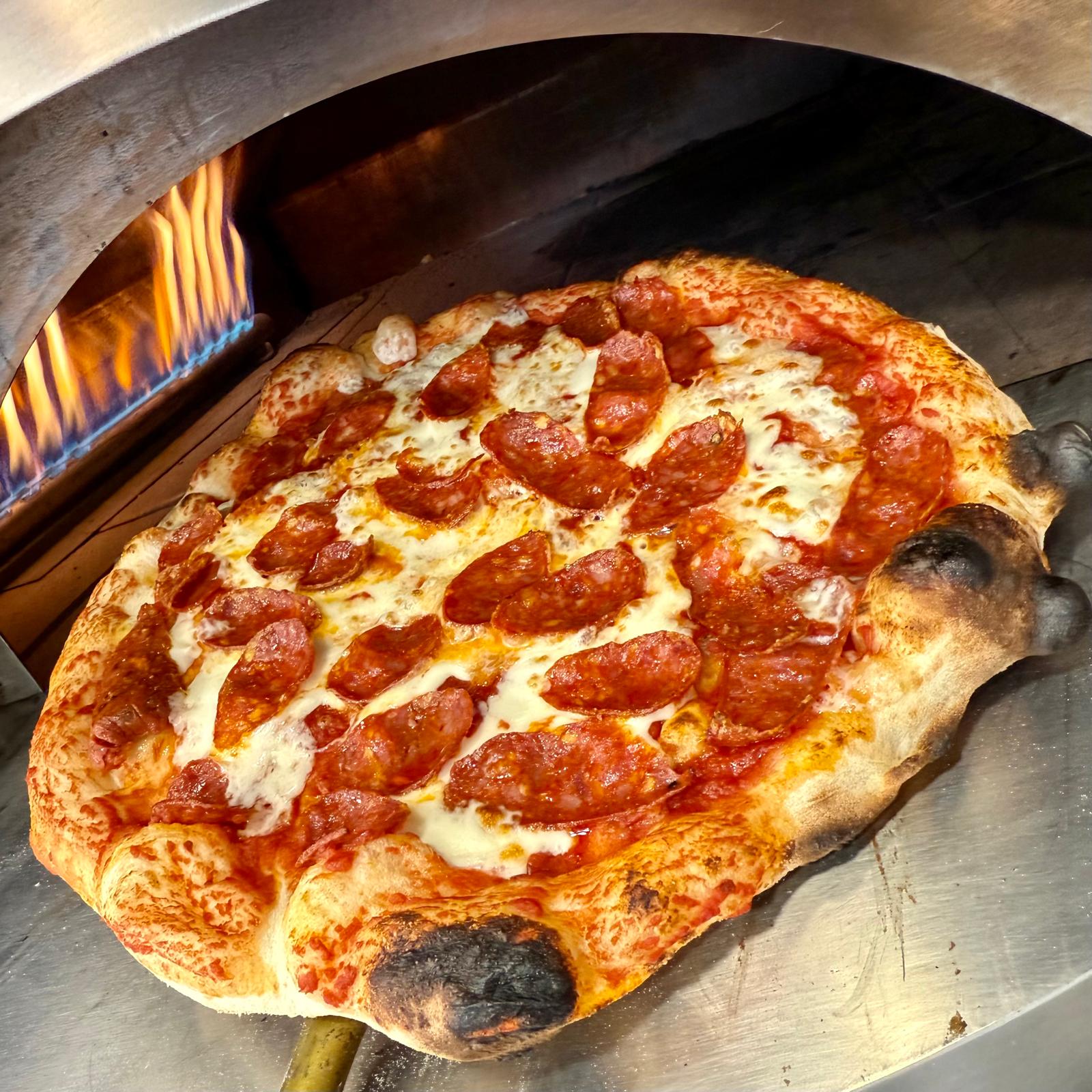 Sauce tomate, mozzarella, saucisson piquant napolitain